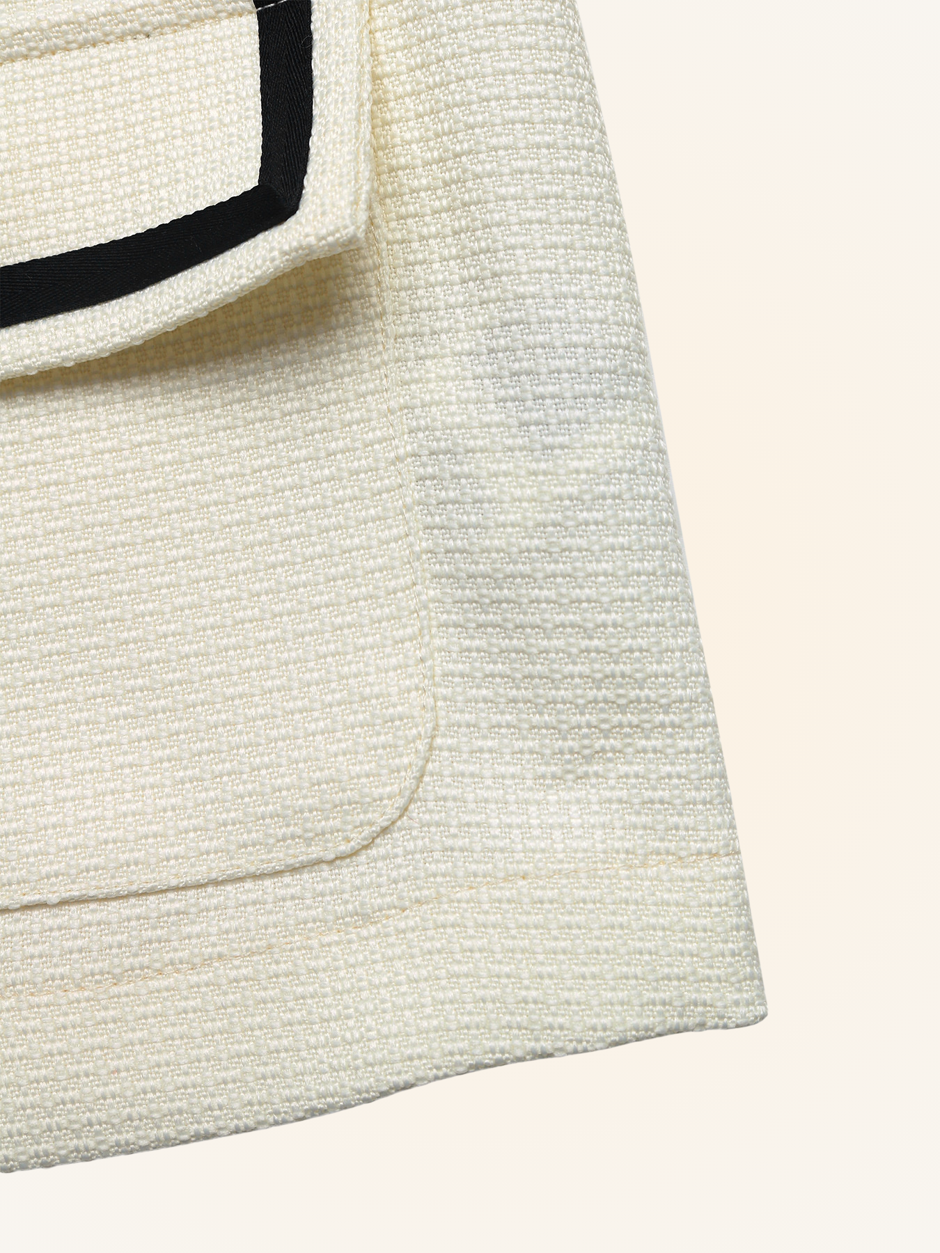 De Élise Contrast Blazer is een klassieker met moderne finesse. De subtiele textuur, contrasterende zwarte biezen en verfijnde gouden knopen geven deze blazer een stijlvolle, Parisian-chic uitstraling. Licht elastisch en comfortabel — perfect voor zowel werk als weekend.